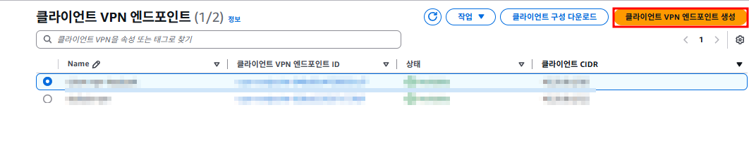 AWS VPC의 Cleint VPN 엔드포인트에 가서 클라이언트 VPN 엔드포인트 생성을 눌러준다.