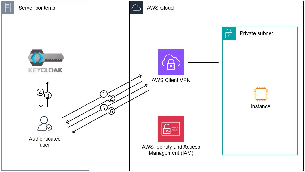 5. AWS VPN 클라이언트는 Keycloak이 제공한 SAML 어설션을 AWS Client VPN 엔드포인트로 전달한다.