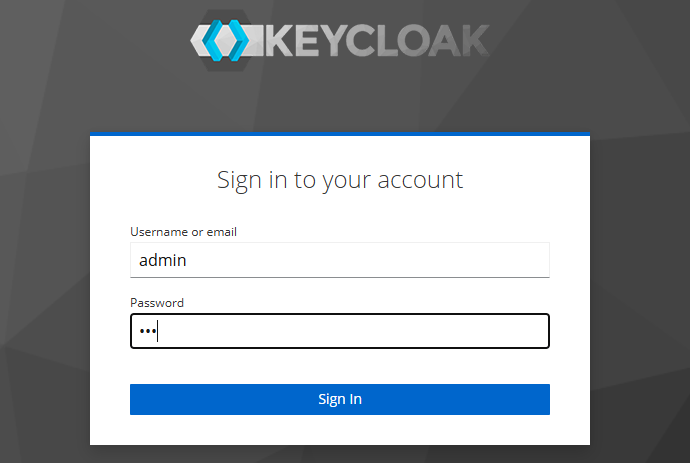 로그인 화면에서 keycloak을 실행할때 입력한 admin 계정으로 로그인한다.